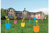 Bunte „Steckerblumen“ am Schaufenster und im Ladenlokal
